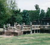 タイの東北部にピマイという町がある。世界地図を広げてみて欲しい。このピマイの町と、カンボジアのアンコールワットとを直線で結ぶ。今は、何も無い。しかし、クメール文明が栄えていた頃、ここには王道があったはずだ。なぜなら、この直線に沿って、クメールの遺跡が、連なっているからだ。今は、ほとんどの遺跡が崩れているが、アンコールワットと同じ様式の遺跡が次々に現れる。クメール文明の遺跡は、石の回廊と池が特徴的だ。水不足にみまわれるこの地域では、池は生活の知恵でもあったのだろう。 フランス人で後に文化大臣になったアンドレ・マルローが、小説「王道」(1930年)の中で書いている。クメールの財宝を求めて密林の中へ分け入る話しだ。『カンボジアの濃密な熱帯雨林の中に埋もれ、かすかに盛土と一部に残る敷石のまるで川床のようにあらわれたり消えたりしている「王道」の導いてくれた先には、荒廃したクメール王朝の遺跡があった。』 私は、考古学とは、まったく縁がない人間だ。その頃は、コンピュータによるシミュレーションで生活していたし、考古学者になりたいと思ったこともなかった。ところが、ある日、私の所へ仕事がまいこんできた。クメール遺跡をデジタル画像として復元できないかという話しであった。面白そうな話しには、すぐに飛びつく。 タイの考古庁と協力して、クメールの遺跡を調査するのだ。タイの考古庁は、若い女性の考古学者が多い。遺跡修復に人生をかけてきたと熱っぽく語るオジイサンも居る。日本から一緒にでかけたのは、土木屋さん、測量の技術者、地底探査の専門家。地底探査の専門家は、南極で生き残った例の犬と一緒に南極にでかけたり、ピラミッドの探査をしたり、ジンギスカンの墓を探したりしていた専門家だ。ここまで書くと誰かわかってしまうかも知れないが、わかんないことしておこう。 (閑話休題:その1)そういえば、もっと昔々、南極探検が始まった頃の話しを聞いたことがある。好奇心の強い若者は、本当に○ッチ○○フを持って行ったんですかと聞いた。すると、老探検家は、なんの躊躇もなく答えてくれた。「ええ。お湯を入れて使ったんです」。なんか、すごく印象に残っている。変なことを思い出してしまった。 (閑話休題:その2)地底探査の専門家に伺った話しで、忘れられないものがある。核燃料の廃棄が問題になっていた頃だったので、私は、日本海溝に捨てれば、地球のマントルの中に沈んでいくはずだと言った。すると、その専門家は、「10億年位すると対流してきて、地球環境を汚染します。私たちは、10億年後の人類に対する責任があります」と答えた。その一言で、この人を、すっかり尊敬してしまった。 当時のカンボジアは、多くがポルポトの支配下にあった。アンコールワットは、ポルポトの支配地域で、入り込むことはできなかった。だから、まずタイにあるクメールの遺跡調査から始めて、平和な時代になったなら、アンコールワットも手がけようという準備調査でもあった。 タイには暑い季節がある。強烈な熱さ。東北タイでは水不足から農作物がとれなくなり、貧しい農民が娘を売ったりする悲劇が生まれる(今は、ちゃうデ~)。丁度、そんな暑い時期に、私たちは調査に向かった。アンコールワットの遺跡をイメージしてもらうと良い。すべてが石造り。どこにも日陰はない。木陰もない。石の上に照り付ける太陽が、さらに暑さを増す。たまに緑の木があっても、グリーンスネークといって、一噛みでおしまいという毒蛇が居る。緑色してるから、よほど近づかないと気がつかない。 いくつもの遺跡を見た。小さな遺跡から大きな遺跡まで。回りが人家や畑になってしまった遺跡もある。そして、大きな遺跡を歩いていた。その遺跡の修復に一生をかけてきたという老考古学者が、定年をまじかにひかえて、若い考古学者や私たちに、熱心に説明をしてくれる。情熱が、ひしひしと伝わってくる。話し始めたら、止まることはない。 私は、いいかげんにうんざりしてきていた。どの遺跡も、どの遺跡も、すべて同じ格好をしているのだ。宗教遺跡というのは、そういうものらしい。暑い、とにかく暑い。考古学には興味はない。皆から離れて、石積みの間になんとか日陰を見つけた。誰にもわからないように、そこに隠れて、ぼんやり煙草をすっていた。 すると、1人の女性考古学者が、私をみつけてやってきた。私の名前はオジサンにしておこう。「オジサン、石には石の居場所があるんですよ」。その言葉を聞いたとたんに、次に彼女が何を話そうとしているのか手に取るようにわかった。彼女は英語を話していたのだが、自分の中では、完全な日本語になっていた。なぜなら、今の情景を知っていたからだ。デジャブというよりも、まったく同じ情景の夢を見たのを思い出した。 何年か前に見た変な夢。石切り場のような遺跡で、女性の考古学者が話しているのを聞いている自分。夢